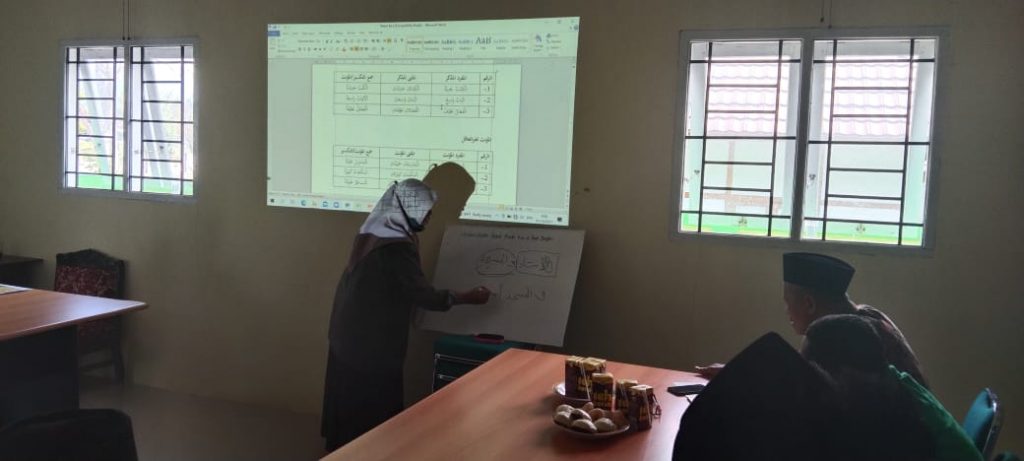 Dalam kegiatan pemberian materi, ada 5 materi yang di ajarkan yaitu materi pertama tentang Pengenalan kata benda (isim) kata kerja (fi’il) dan huruf, materi kedua tentang Perubahan baris akhir kata dan perubahan kata kerja yang materinya dibawakan oleh ibu Dr. Kartini, M.Pd. Materi ketiga tentang Jumlah fi’liyah dan jumlah ismiyah yang dibawakan oleh bapak Andi Arif Pamessangi, S.Pd.I.,M.Pd, materi ke empat tentang Unsur pelengkap dalam kalimat yang dibawakan oleh bapak Naidin Syamsuddin, S.Ag.,M.Pd dan materi kelima tentang Kaidah-kaidah kunci baca kitab kuning dan contoh-contoh kaidah i’rab dalam bahasa Arab yang dibawakan oleh bapak Drs. AlwiYunus, M.H.
