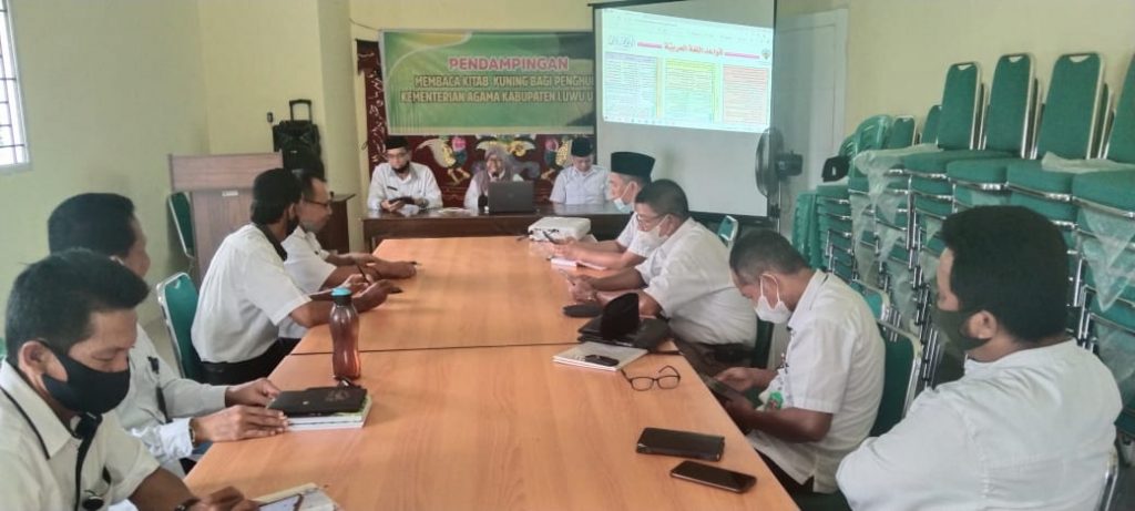 Masamba, Jumat 30 Juli 2021. Beberapa dosen dari program studi Pendidikan Bahasa Arab Fakultas Tarbiyah dan Ilmu Keguruan IAIN Palopo melaksanakan kegiatan pengabdian kepada masyarakat dengan judul kegiatan Pelatihan Membaca Kitab Kuning bagi Penghulu Kementerian Agama Kabupaten Luwu Utara. kegiatan ini dilaksanakan di kantor KUA Masamba selama 3 hari dalam 3 pekan yang pesertanya dari para penghulu se-Kabupaten Luwu Utara berjumlah 12 orang. Kegiatan tersebutterdiri dari beberapa tahapan kegiatan yaitu: tahapan materi, praktek dan pendampingan.